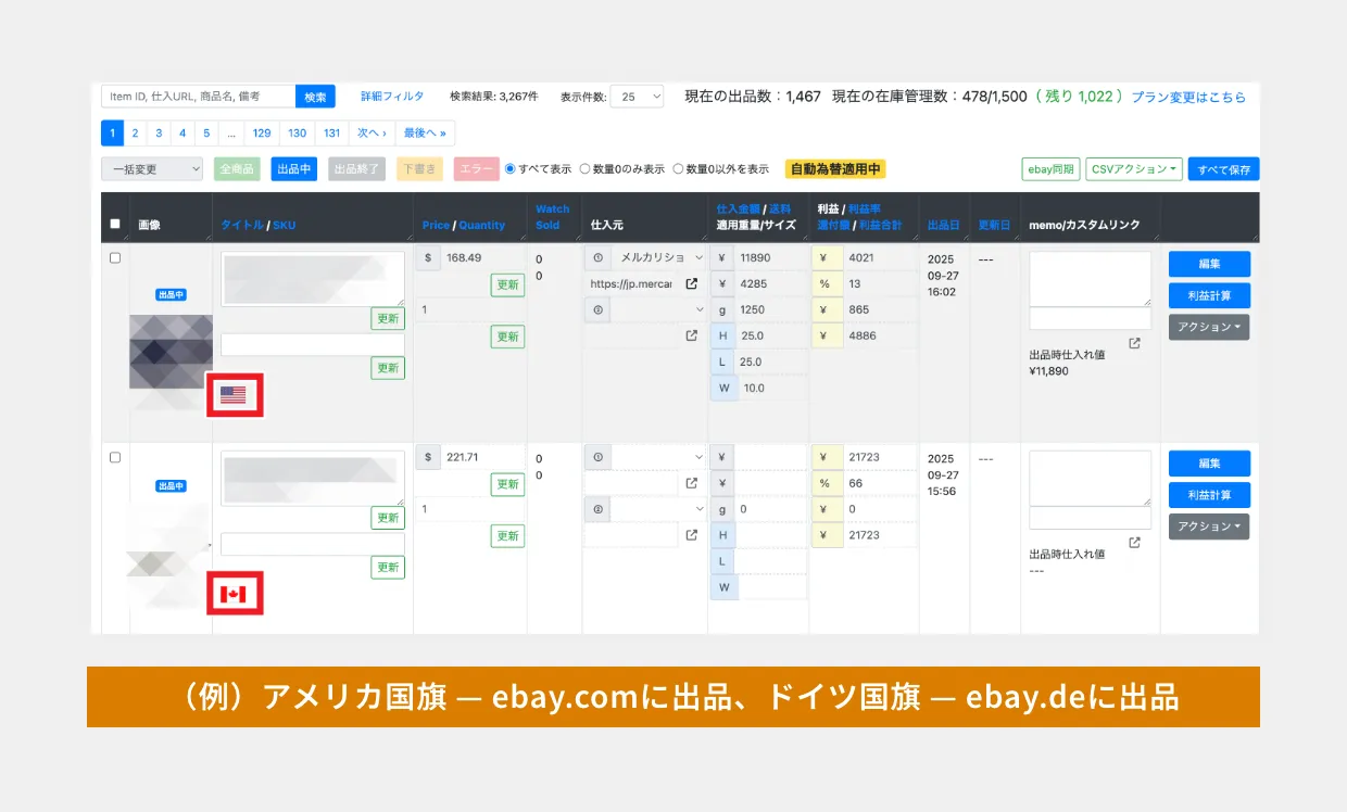 購入時と発送時に関税注意文を自動送信。 また、「.com」に出品している商品をebay magで他国展開した場合、セルスタでも他国商品を取り込むことができます。