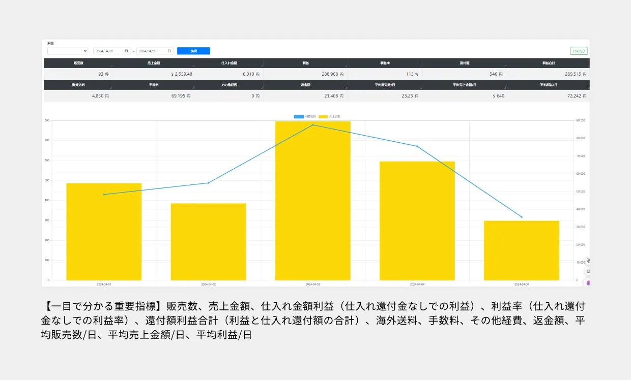 売上・経費・利益を自動集計。 月次レポートがワンクリックで完成。 確定申告の準備も楽になります。