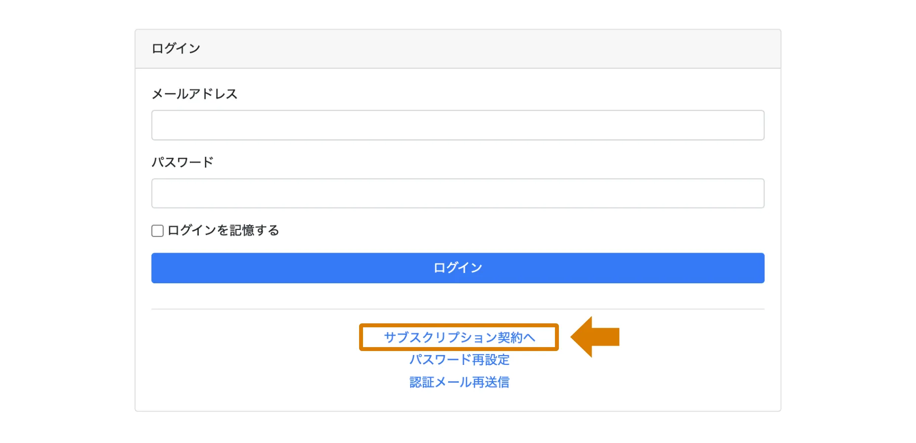 セルスタの公式サイトにアクセスし、ログイン画面から「サブスクリプション契約へ」をクリックします。