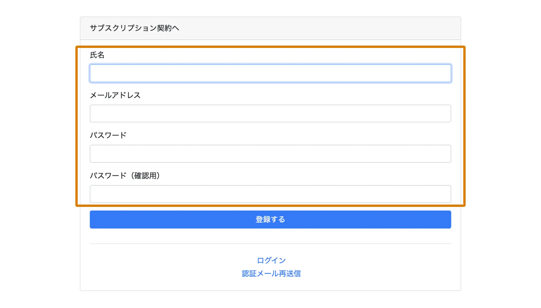 お名前、メールアドレス、パスワードを入力して「登録する」ボタンを押します。