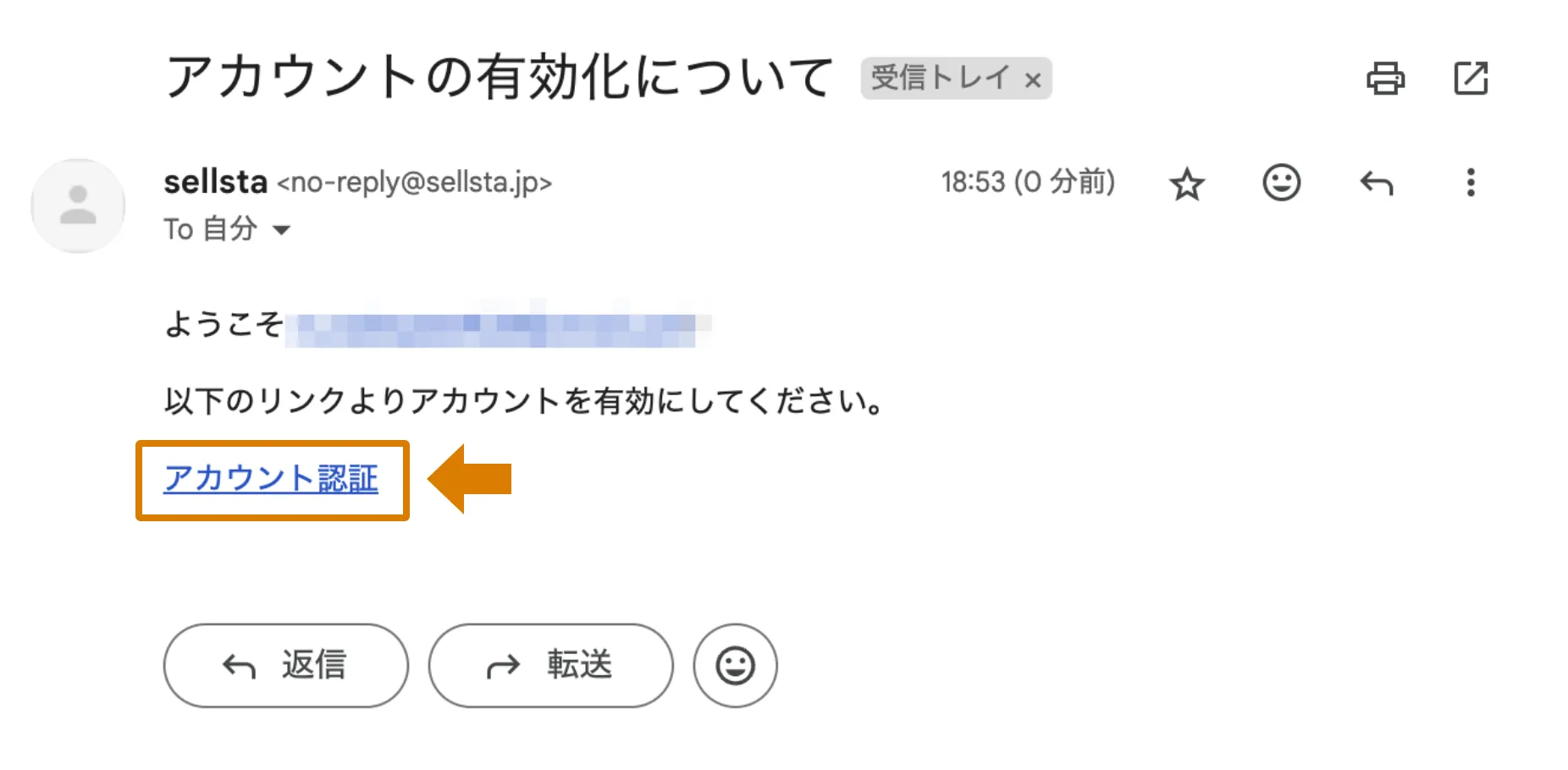 登録したメールアドレスに確認メールが送信されます。メール内の「アカウント認証」をクリックし、アカウントを有効化してログインします。