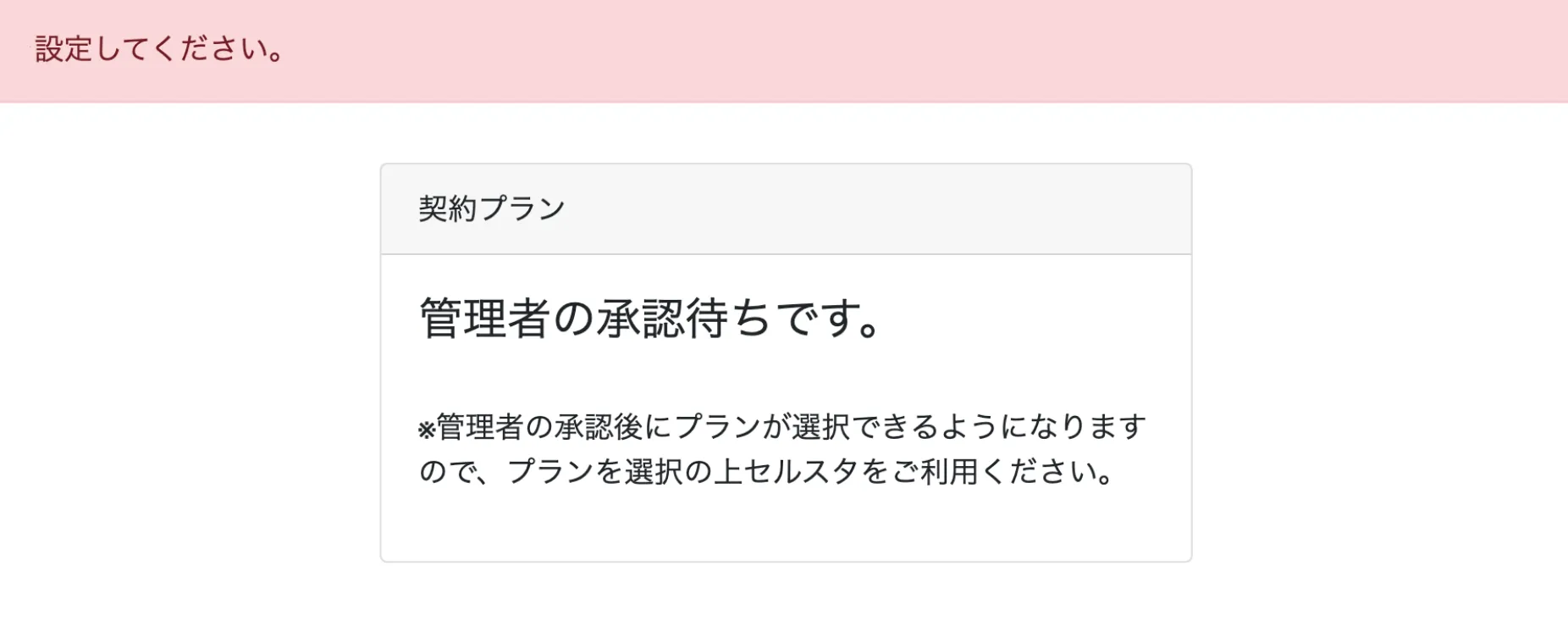 ログインに進むと、「管理者の承認待ちです。」という画面に遷移します。管理者側でユーザーに問題がないかを確認した上で、随時承認をしていきます。