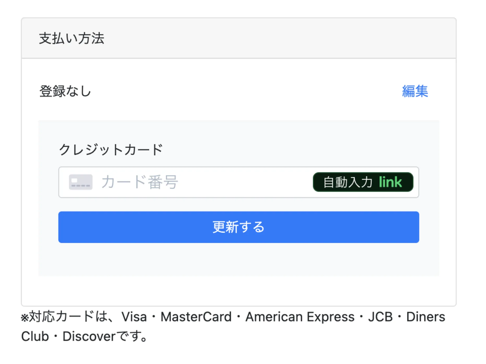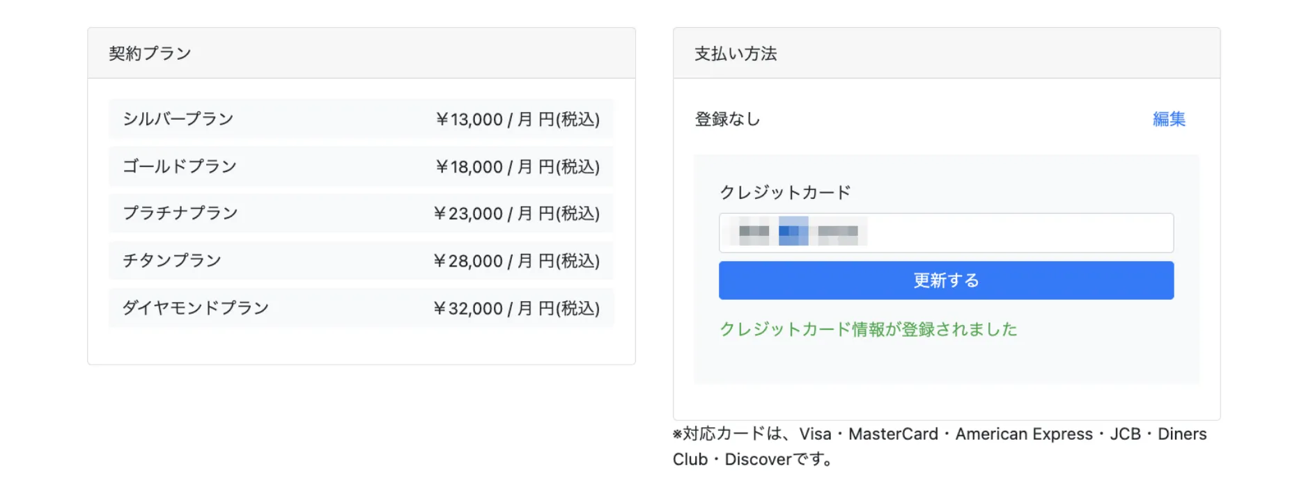 情報を入力し終わったら「更新する」をクリックします。クレジットカードの登録は完了です。