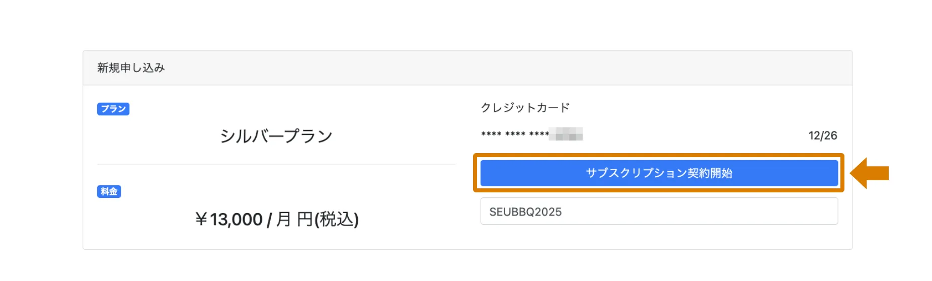 プラン選択後、「サブスクリプション契約開始」でセルスタのお申し込みは完了となります。